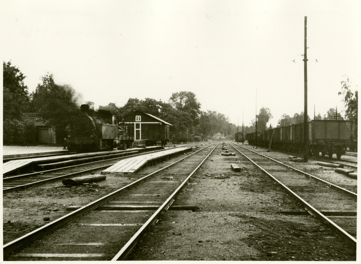 KNJ, Krylbo - Norbergs Järnvägs lokstall. KNJ drift- och godsbangård, självständig station ett år innan. Ett stationshus byggdes, arkitekt Axel Kumlien, men användes aldrig som sådant utan blev personalbostad.