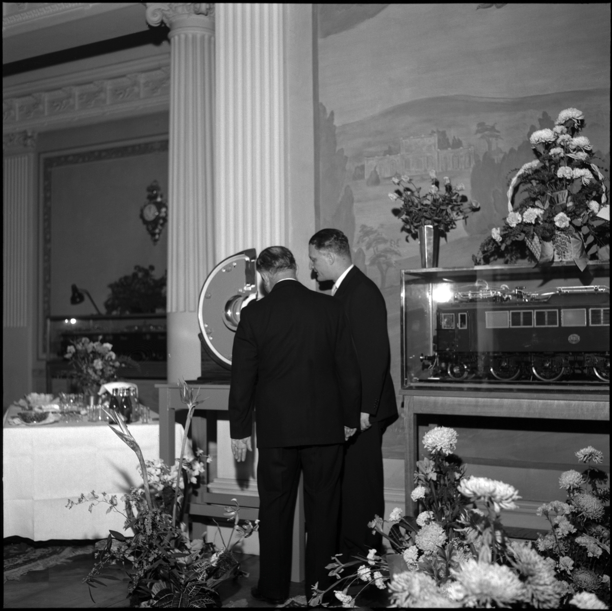 Generaldirektör Erik Upmark tar emot gåvor från Kalmar Verkstad och Motala Verkstad, AB.