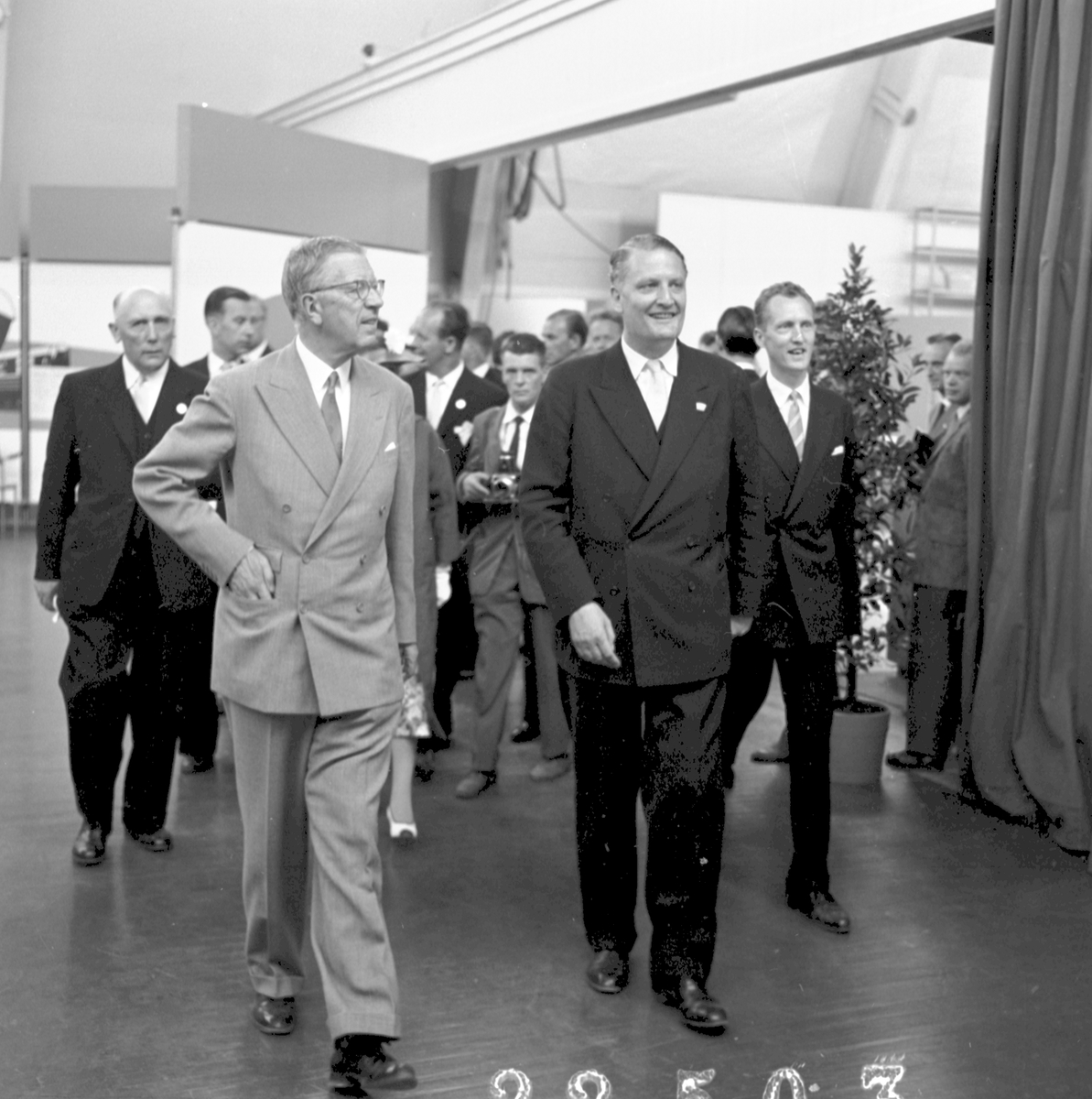 Titel: Kungaparet besöker M/S Trelleborgs utställning Kung Gustav VI Adolf Generaldirektör Erik Upmark