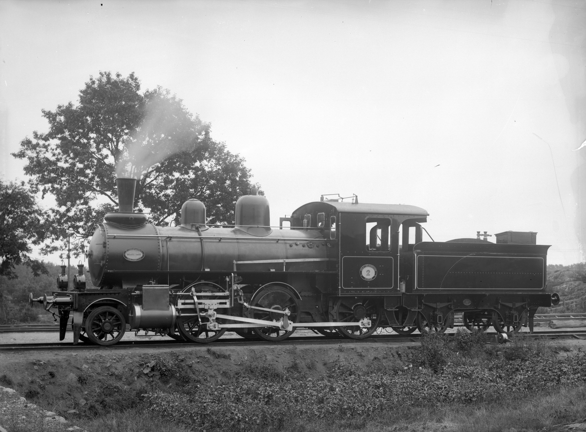 DHdJ lok 2. Loket tillverkades av Nohab och hade högsta hastighet 70 km i timme. Bilden är troligen tagen vid leveransen. Såldes 1926 till Sveriges Järnvägar, fick littera SJ DHa 1479. Skrotades 1937 i Vislanda.