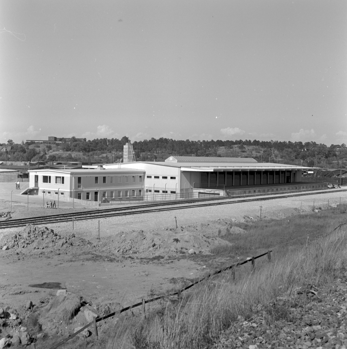 Statens Järnvägar, SJ. Svenska Lastbil AB, SLAB magasin i Årsta. Nybyggt