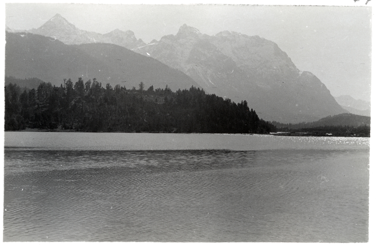 Titel: Utsikt från dammanläggning mellan Walchensee och Mittenwald".