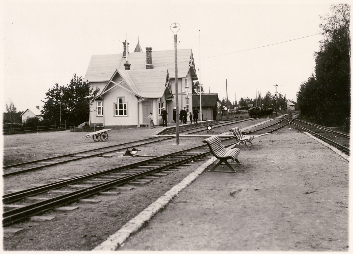 Titel: Stationen kom till 1908, då samtidigt den gamla "anhalten" Rostock lades ned. Anhalten var belägen ett stycke norrut och betjänade Rostocks Hälsobrunn. Ny stationsbyggnad uppfördes 1941 omedelbart norr om den gamla som revs då den nya togs i bruk. Den nya stationsbyggnaden revs 1974. År 2000 uppfördes en modell i skala 1:2 av 1908 års stationshus på platsen för detta. Husmodellen finns kvar 2008.