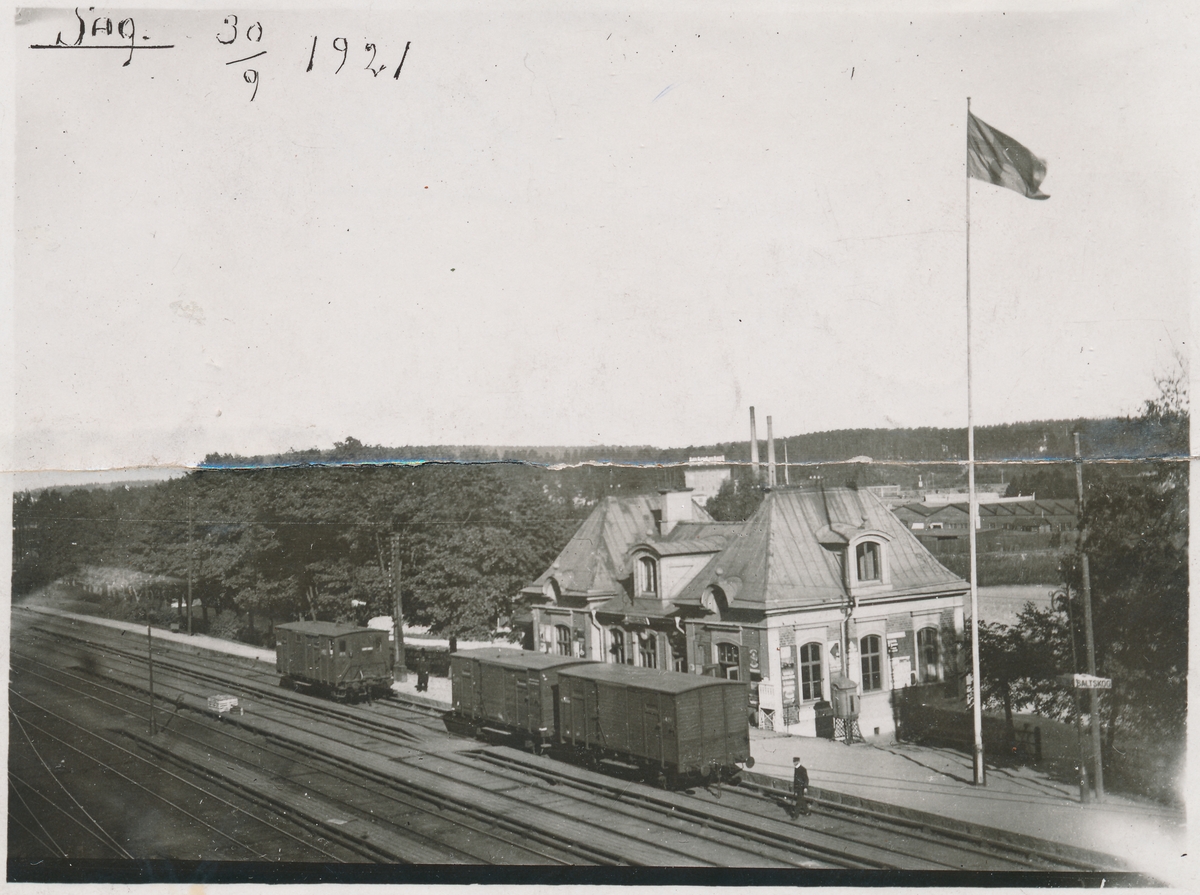 Stationen anlades 1860. Den gamla stationen hette Södertelge från början. Från 1885 till 1888 fick namnet Södertelge övre, sedan Saltskog tills ny station Södertälje södra byggdes 1921. Då överflyttades trafiken från Saltskog till Södertälje.