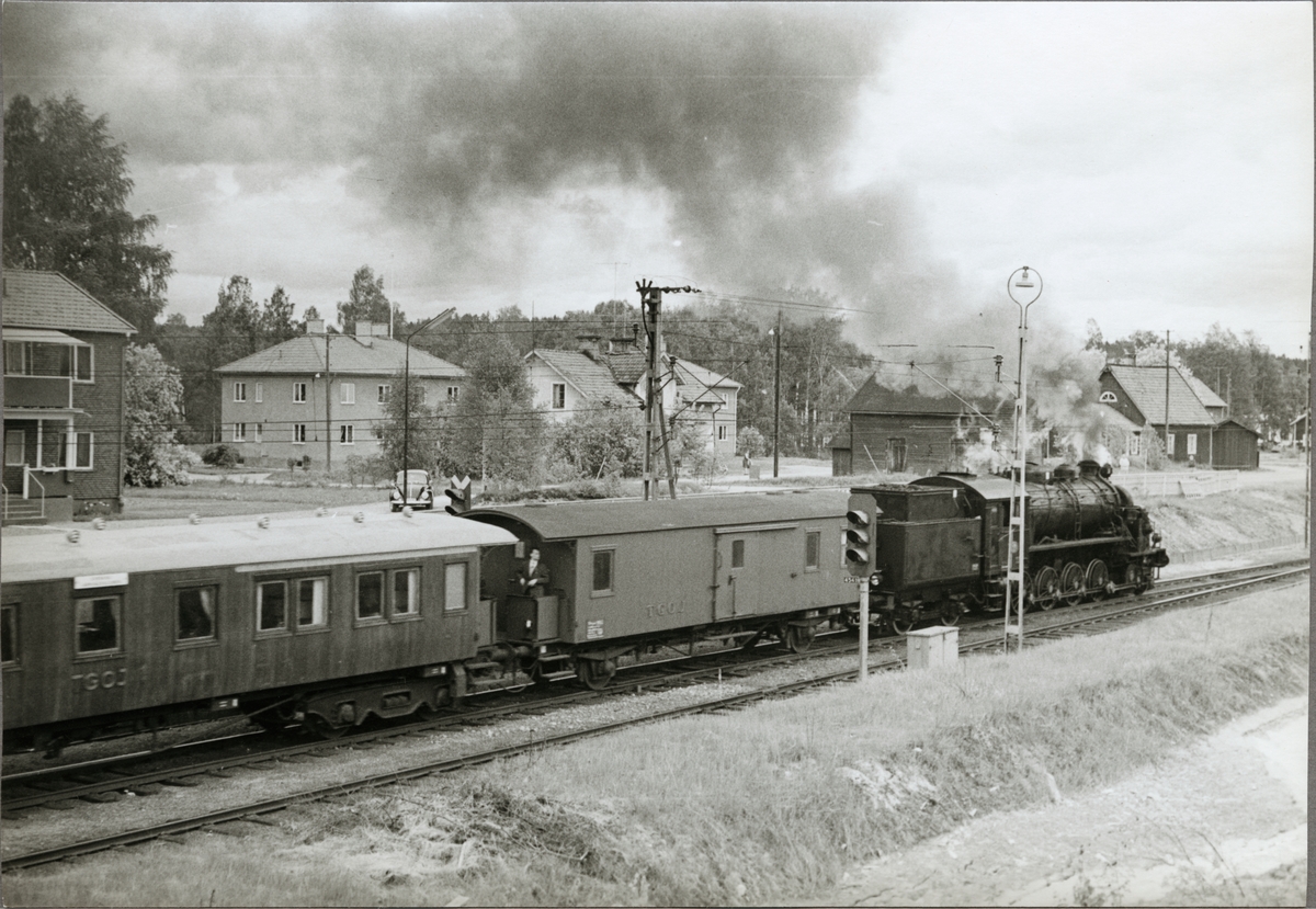 Svenska Järnvägsklubbens tåg draget av Trafikaktiebolaget Grängesberg - Oxelösunds Järnvägar, TGOJ M3t 71, gör uppehåll under resan.