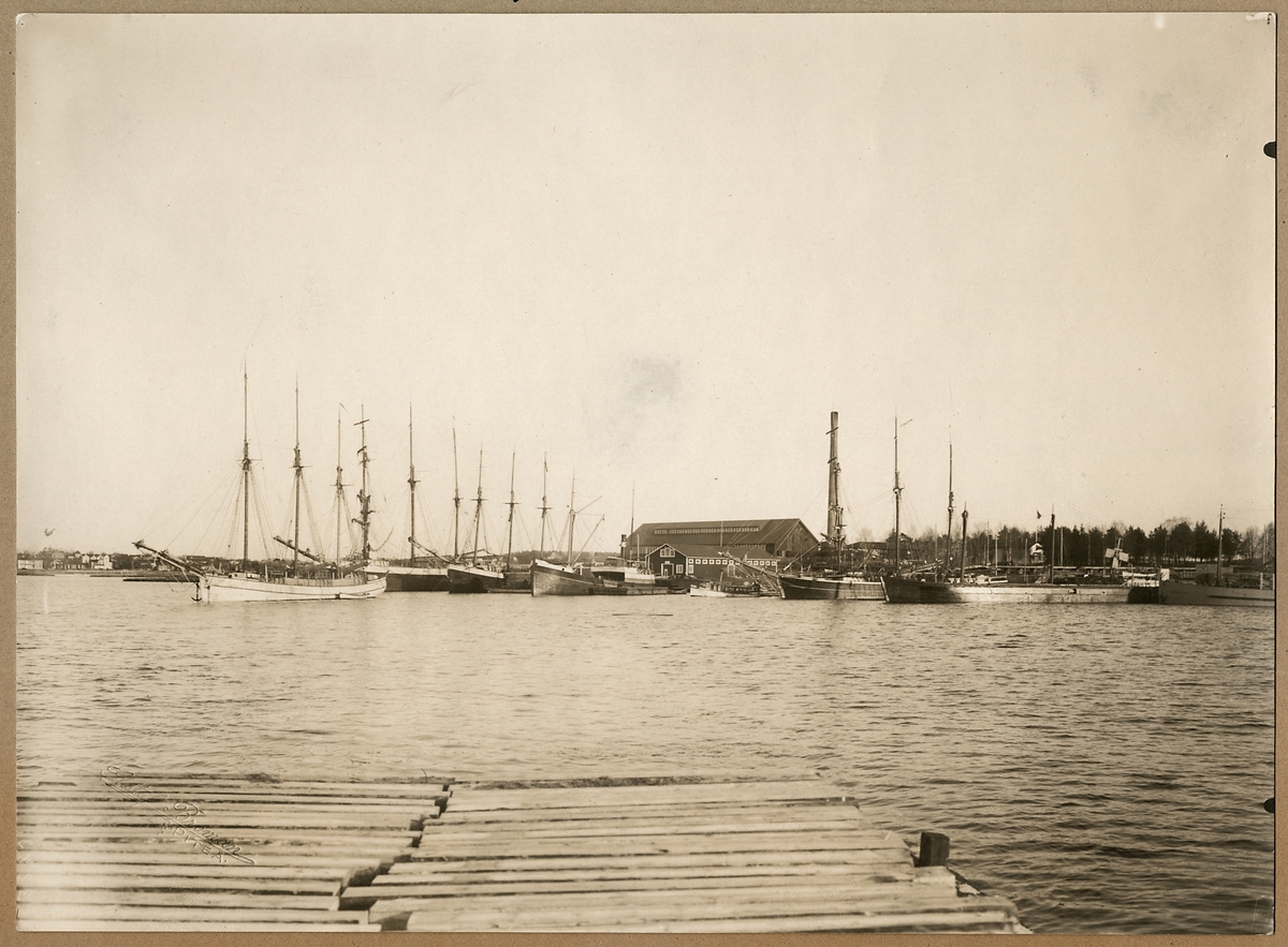 Fartyg vid lastkajen vid Statens Järnvägars slipersfabrik, Piteå.