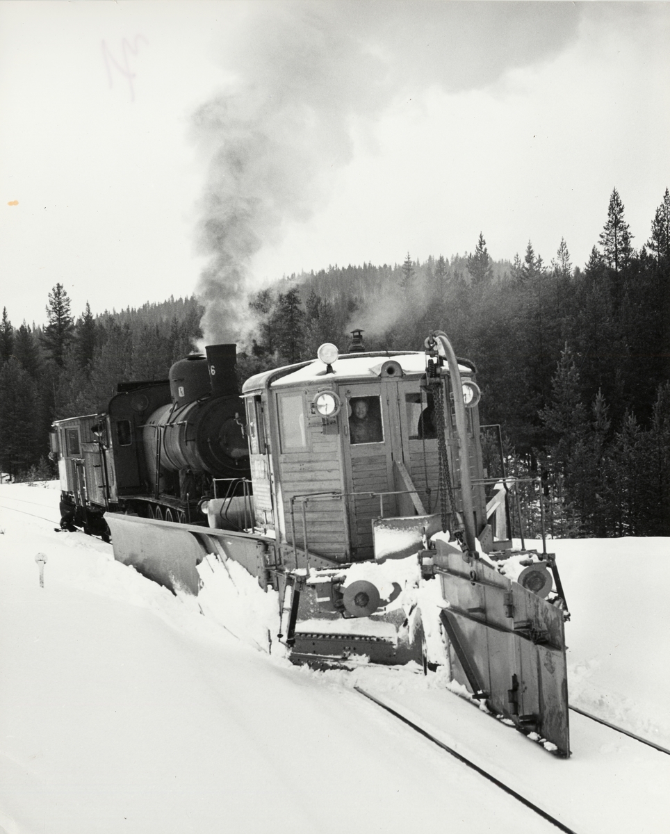 Snöröjning. Spårrensare med E-lok och vingplog. Hotingbanan Forsmo-Hoting.