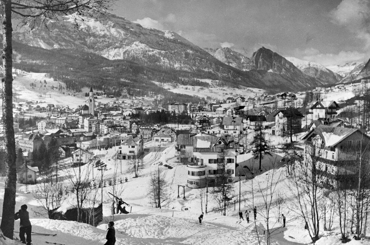 Panoramabild med skidåkare. Tack vare järnvägarna blev det så småningom fart på turismen. SJ har byggt linbanor vilket var nyttigt och nöjsamt.