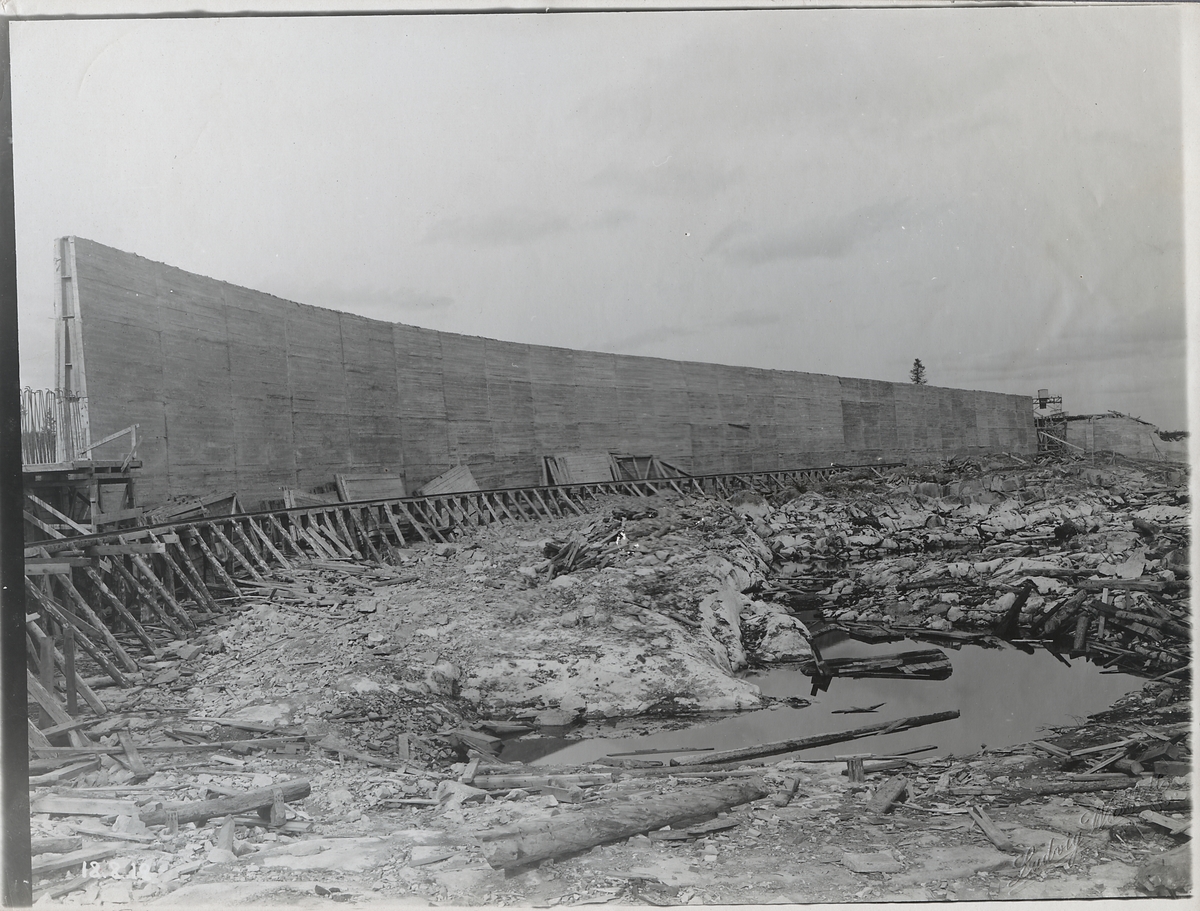 Porjus kraftverk under byggnation vid Stora Lule älv. Dammkärnan.