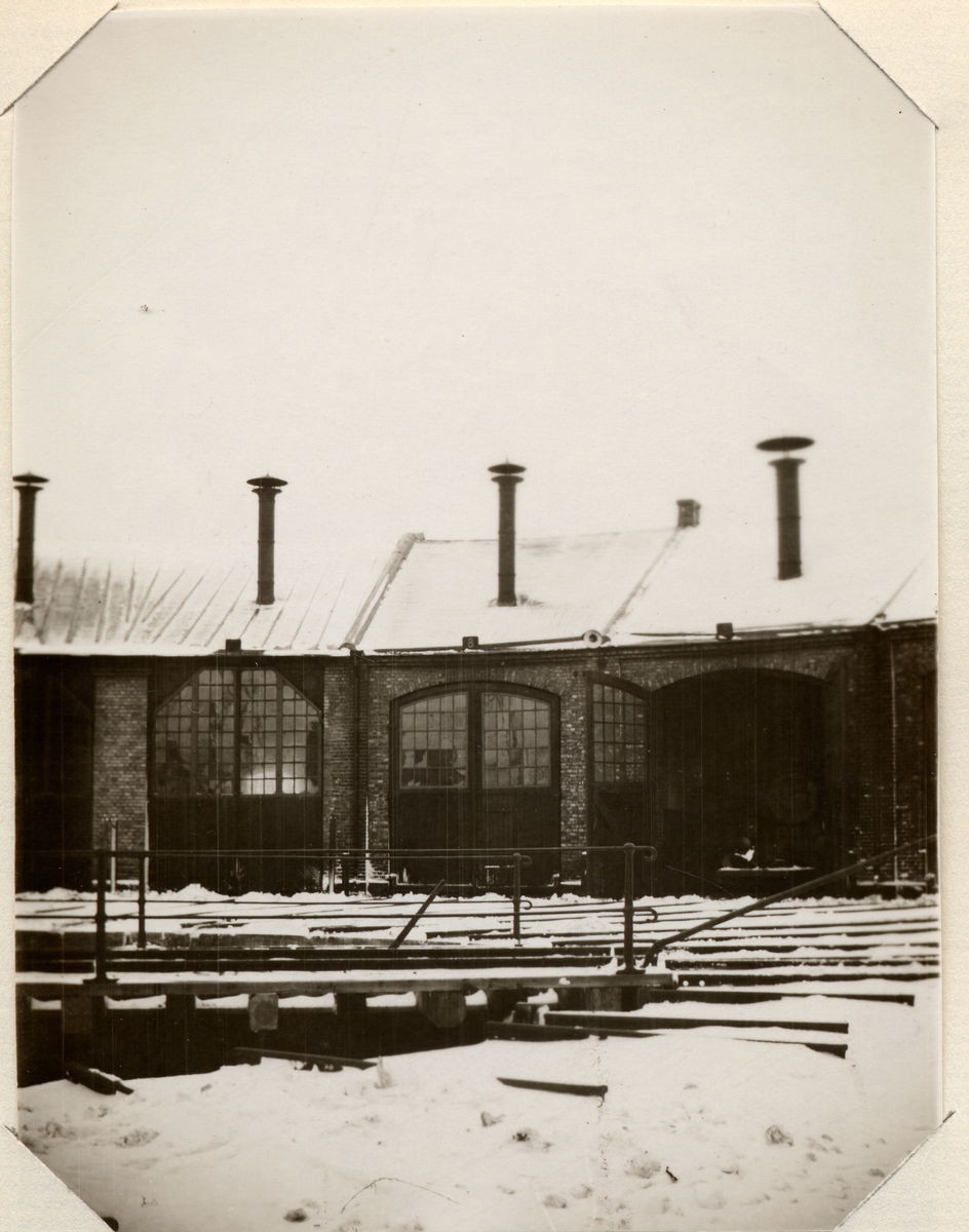 Halmstads lokstation, detalj av 15 meters vändskiva och lokstall.