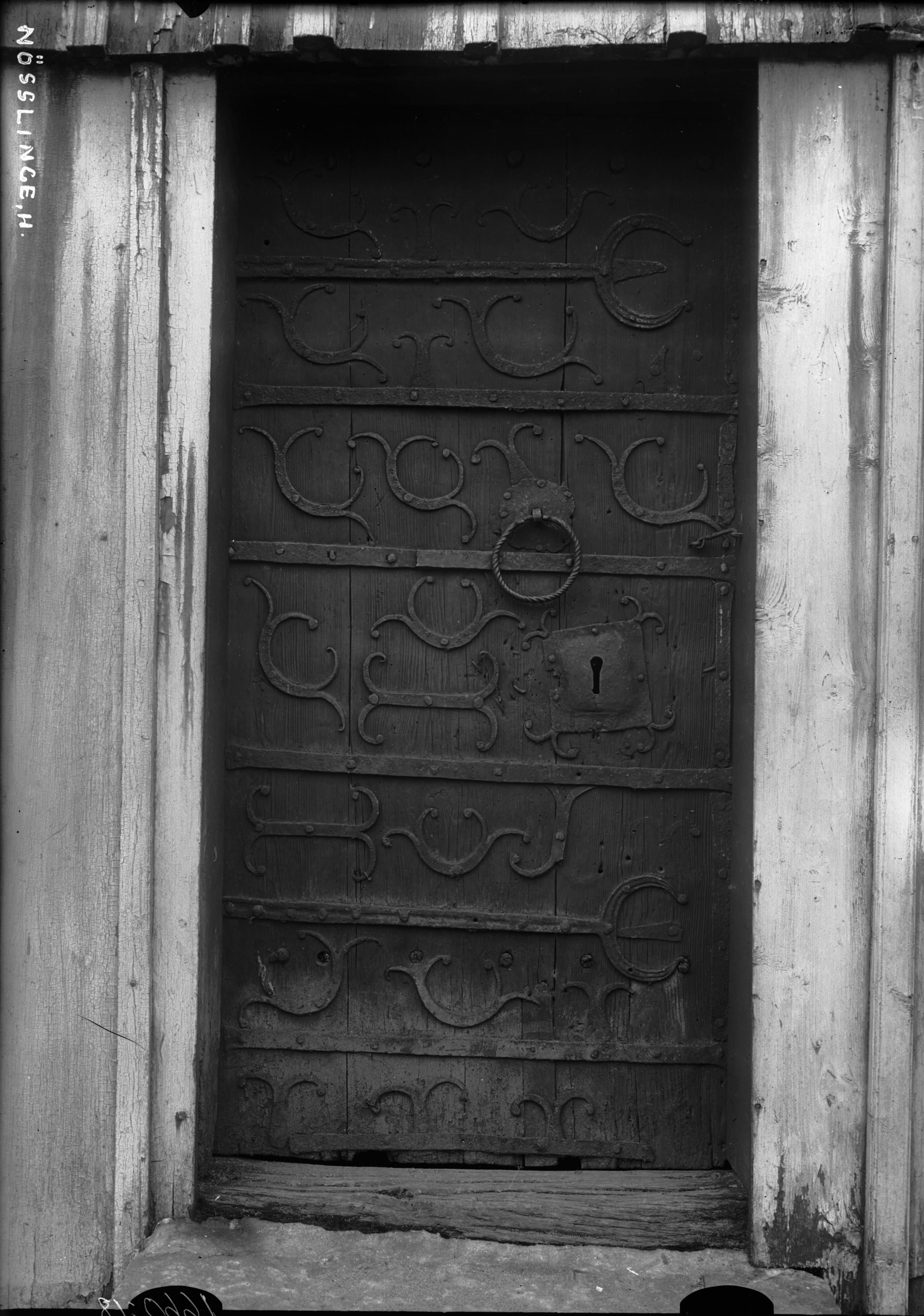 Kyrkdörr av ek med järnbeslag. 1400-talet. Snabbinv.