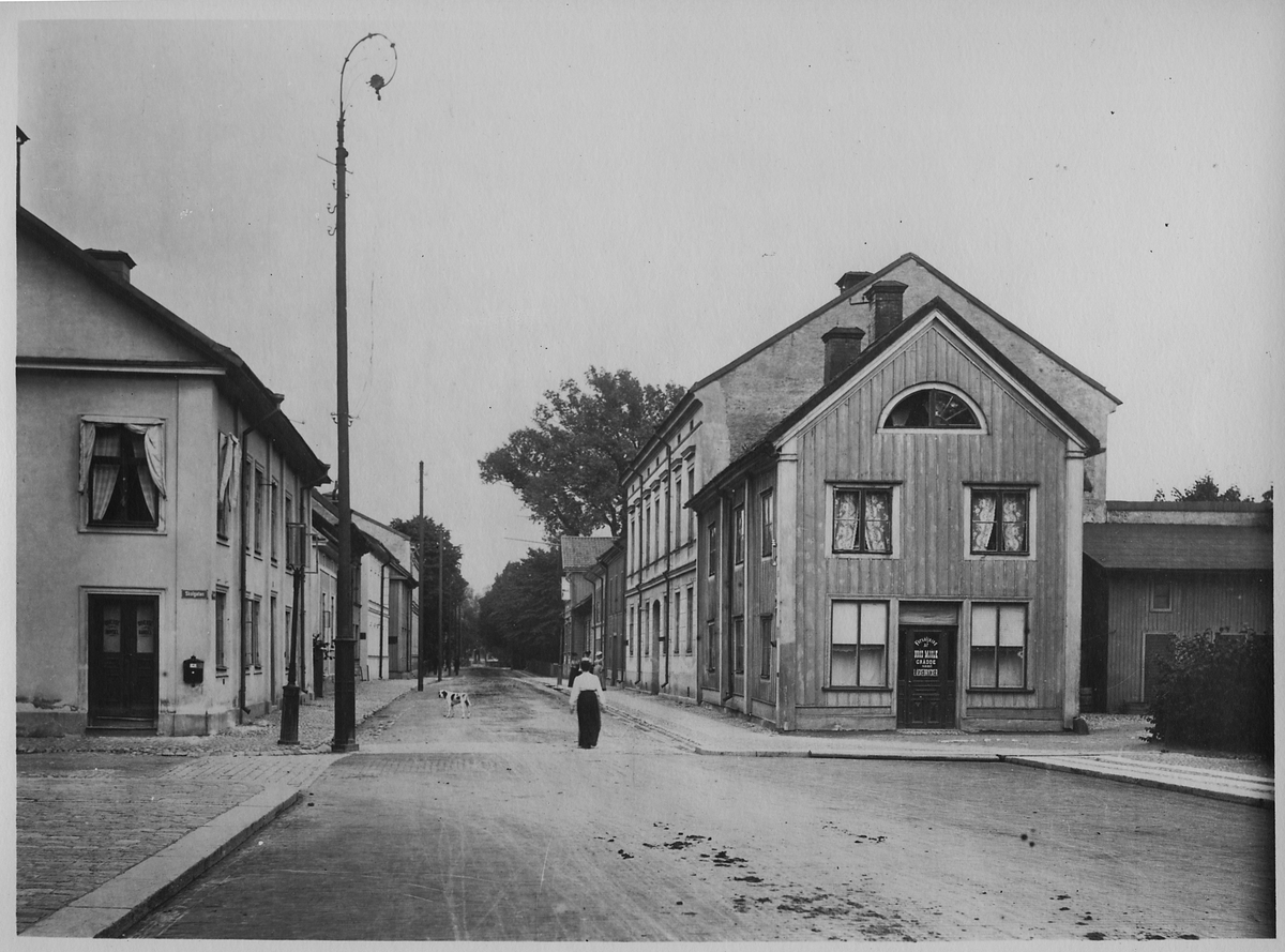 Olaigatan i Örebro, mot öster från Karolinska läroverket.