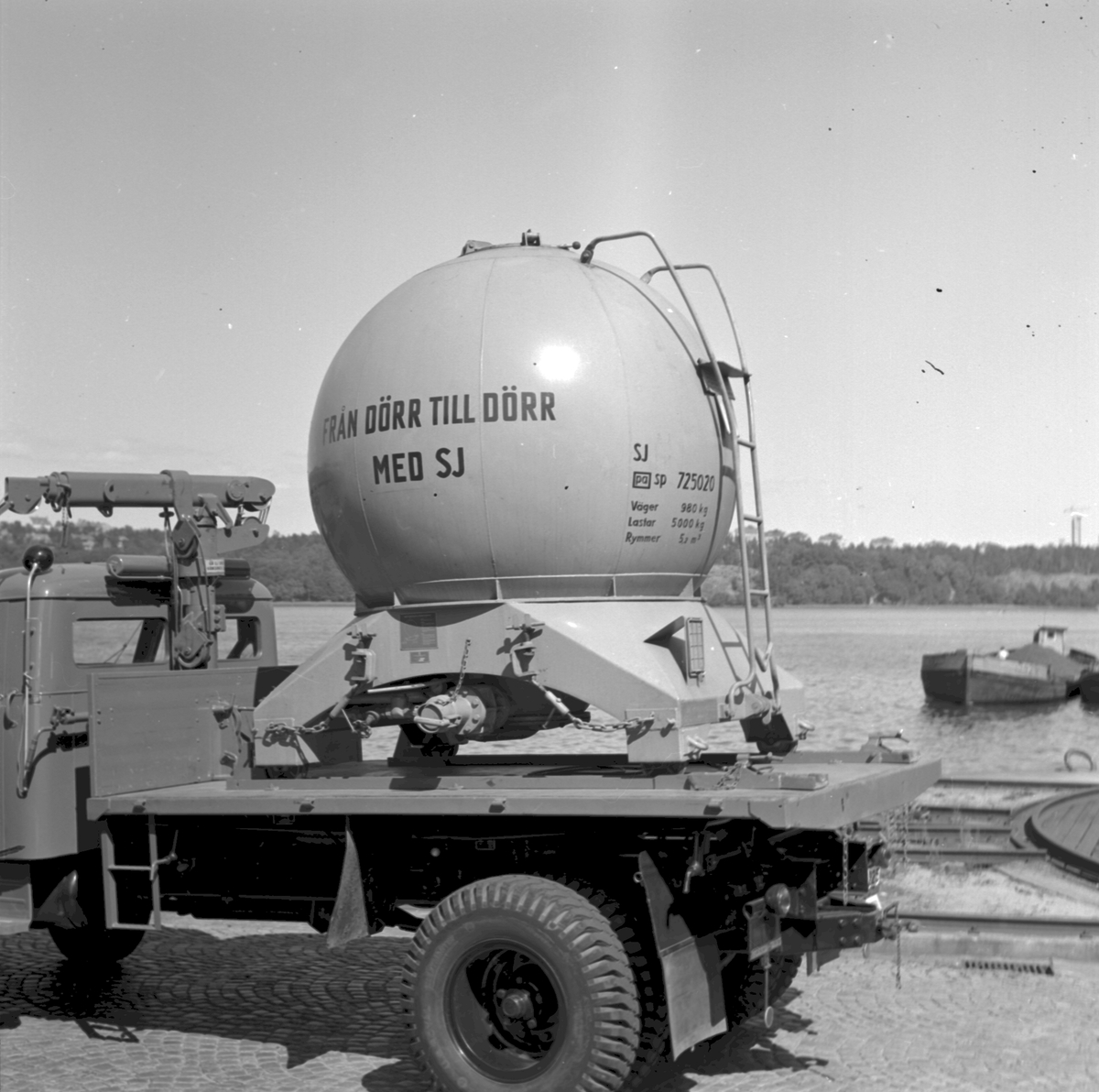 Titel: Statens Järnvägar, SJ storbehållare lastad på lastbilsflak