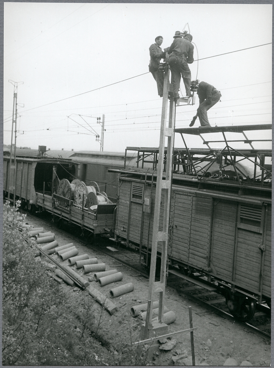 Montering av kontaktledning. Statens Järnvägar, SJ Efd 795.