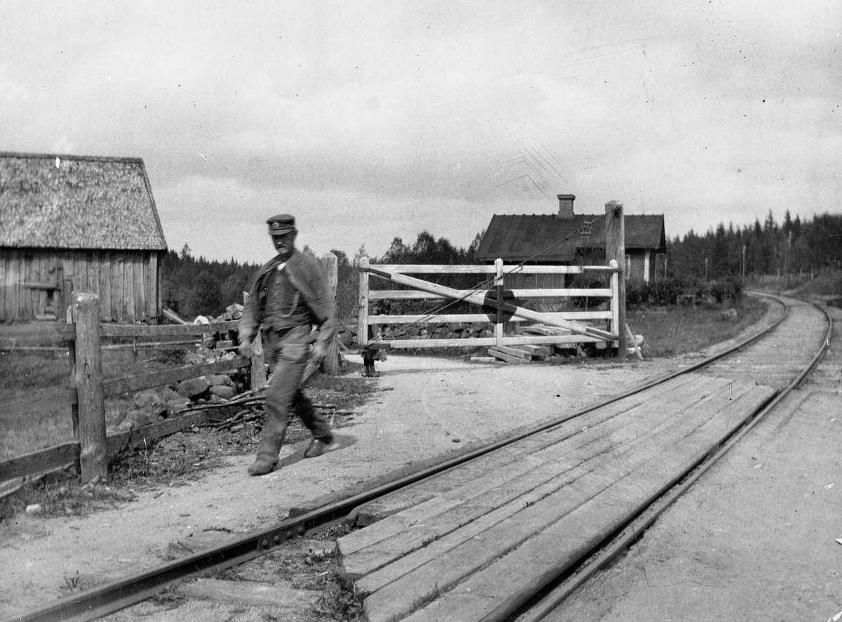 Titel: Kinds Härads Järnväg. KHdJ. Banvaktstuga och vägkorsning vid Nytorp strax öster om Roppered.