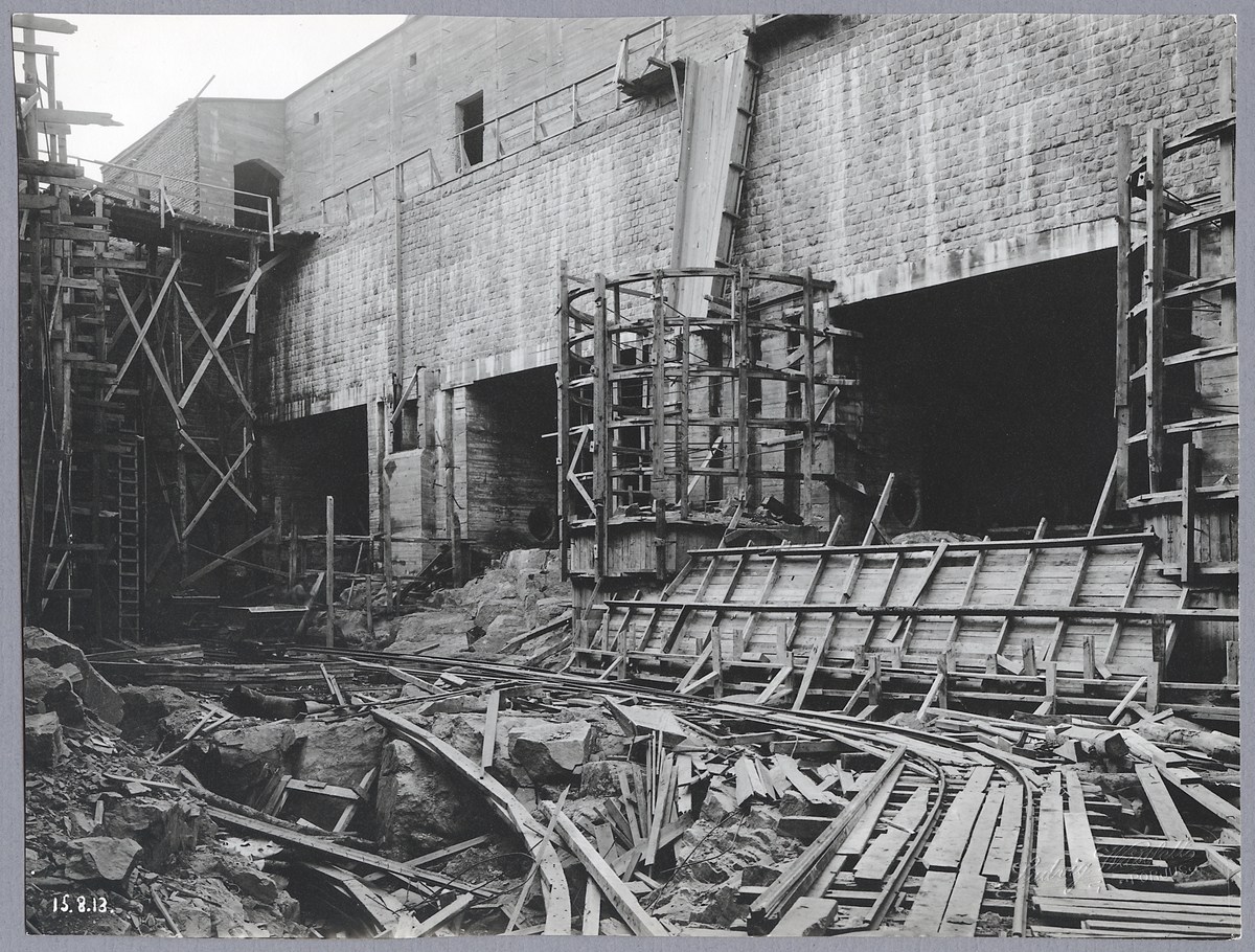 Porjus kraftverk under byggnation. Fördelningsbassängen.