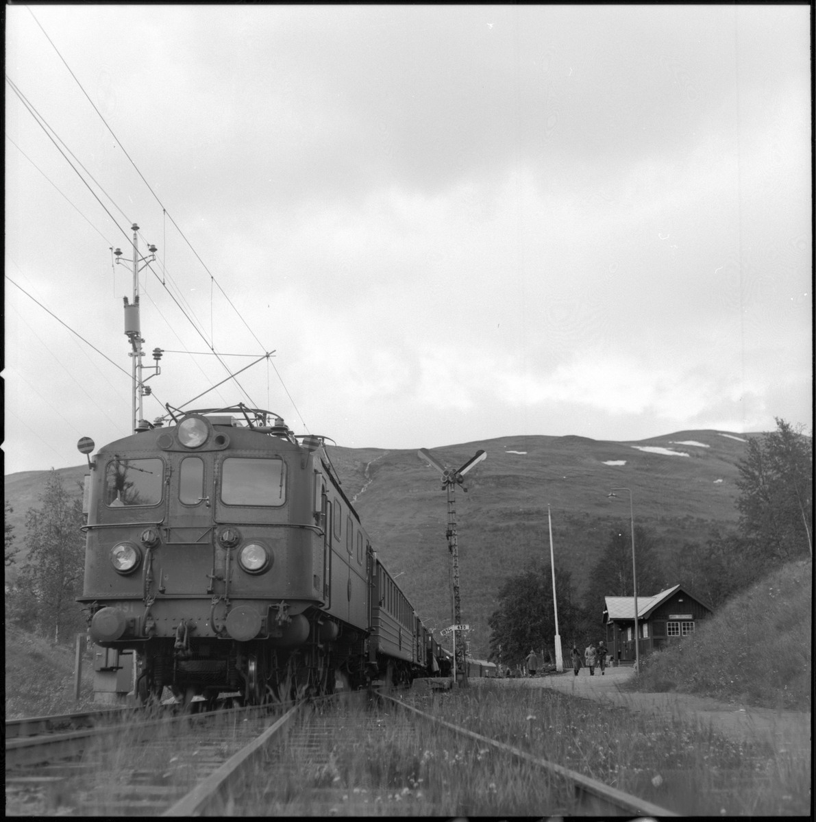 Statens Järnvägar, SJ Da 891 med vagnar. Sunlit Nights Land Cruises (SNLC) - tåget vid Abisko och Björkliden stationer.