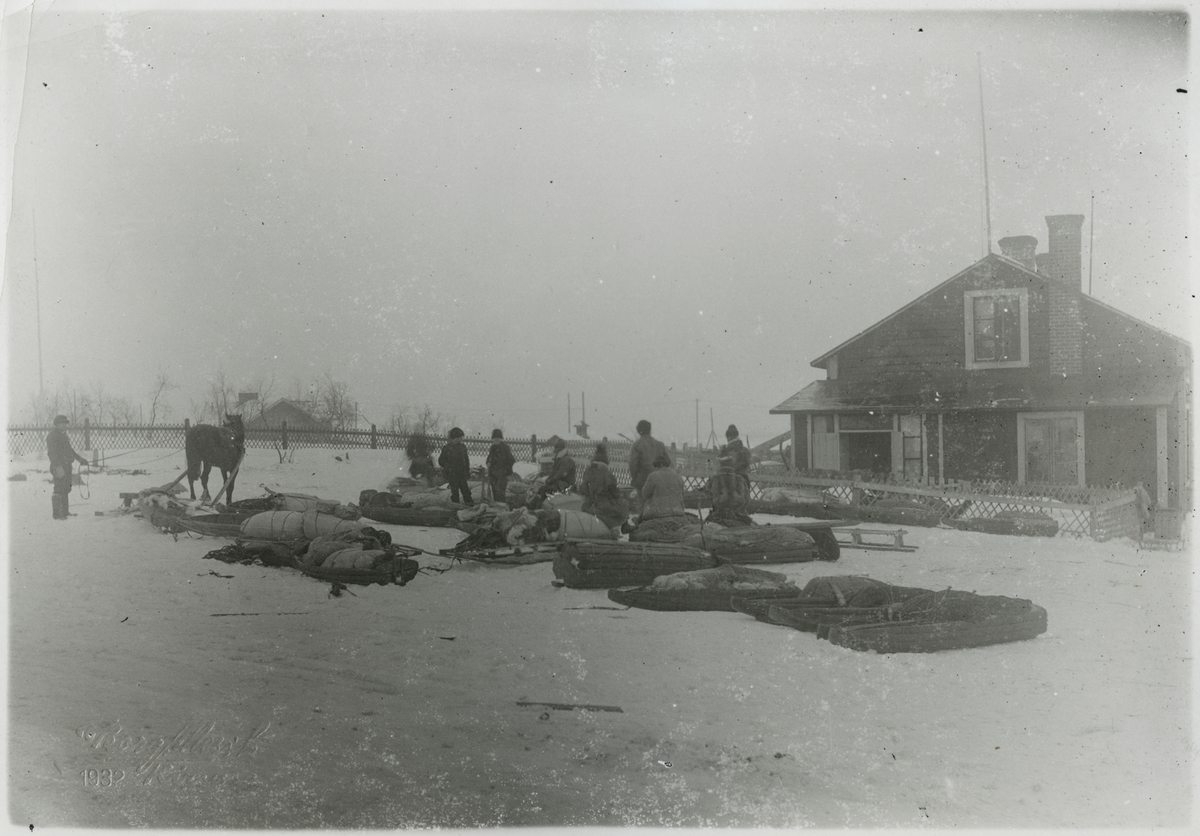 Utanför Hannu och Greens proviant förråd intill gamla disponentbostaden i "Luossavaara"
