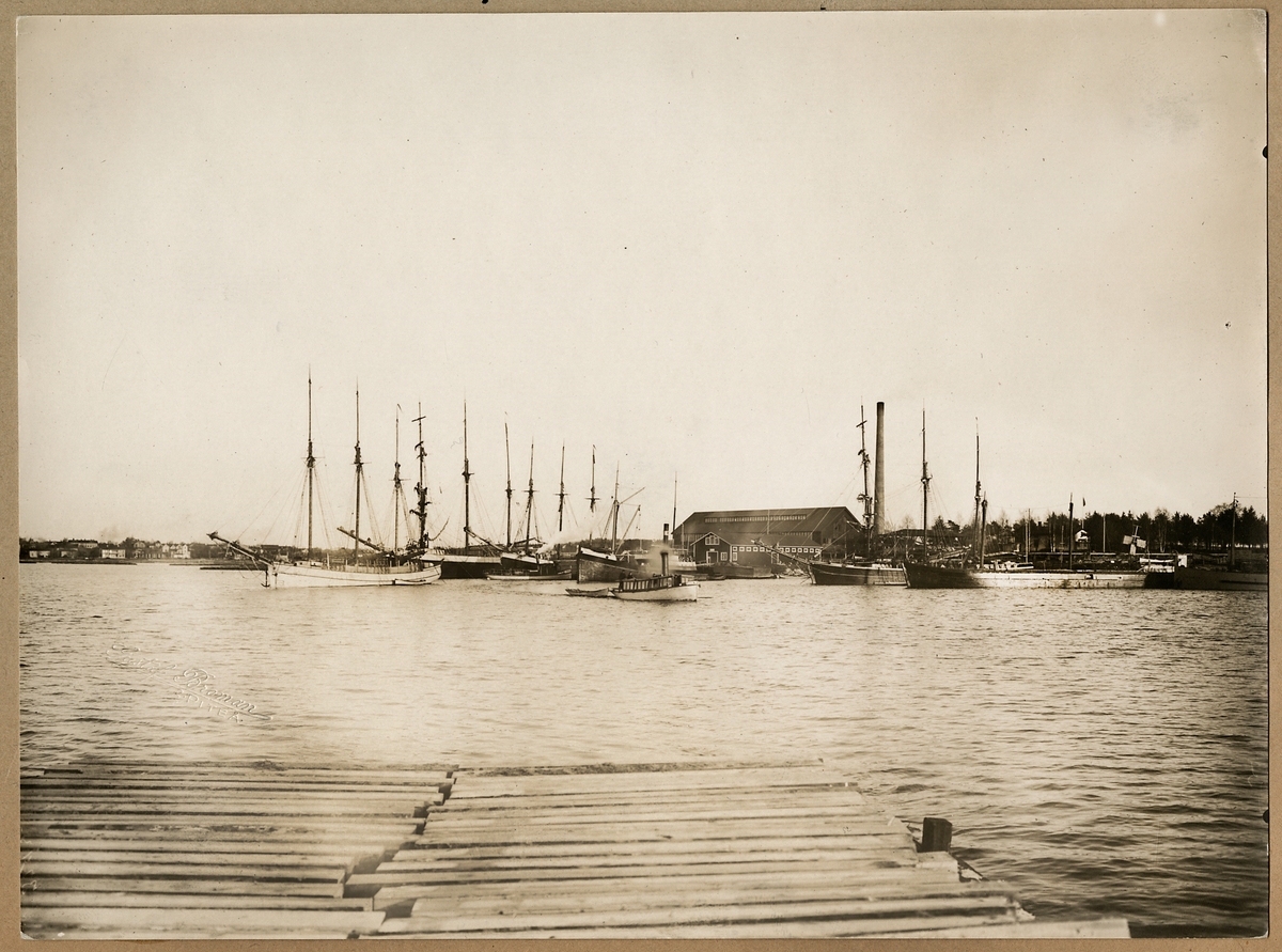 Fartyg vid lastkajen vid Statens Järnvägars slipersfabrik, Piteå.