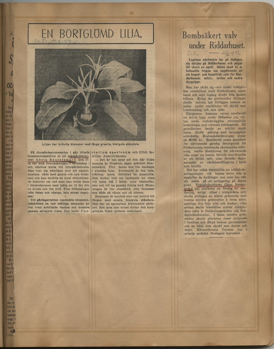 Svenska Dagbladet, 17-06-1937: En bortglömd lilja.