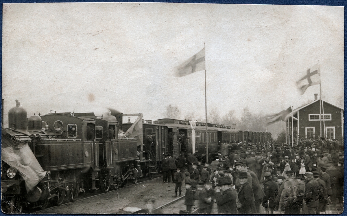Tidaholms järnväg, TJ lok 1 "Vulcan" och TJ lok 2 "Tidaholm" vid invigningen av Vartofta banan 1906.