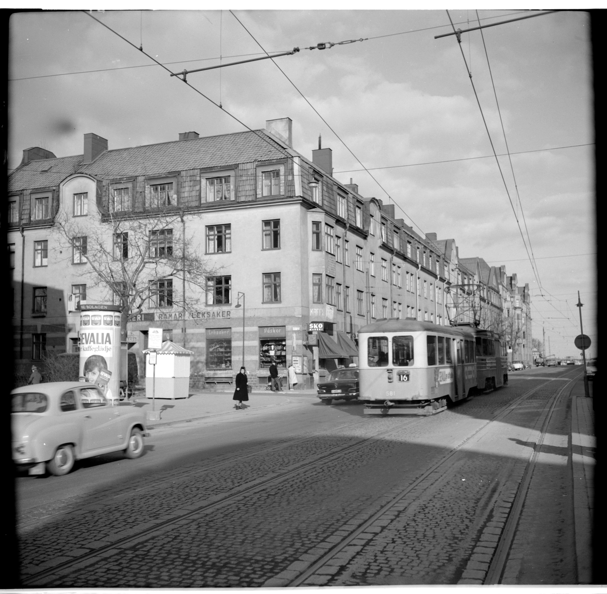Aktiebolaget Stockholms Spårvägar, SS B12 (II) 581 "två-rum-och-kök" linje 16 Slussen - Mälarhöjden på Hägerstensvägen genom Aspudden.