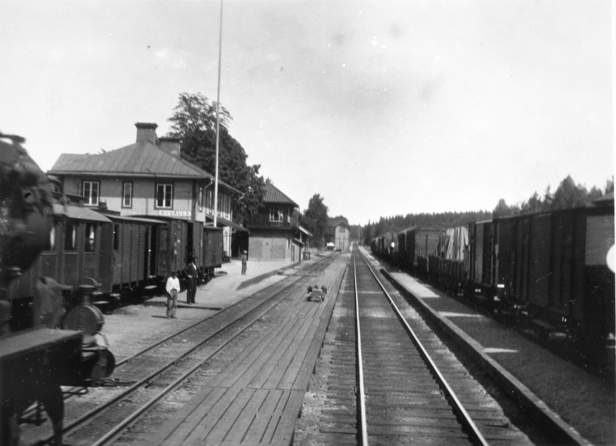 Byvalla järnvägsstation. Det vänstra spåret har två spårvidder, detta behövdes på grund av att den smalspåriga Byvalla-Långshyttan järnväg också trafikerade stationen.
