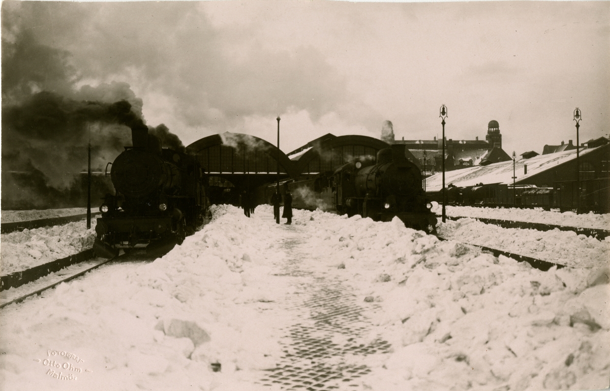 Malmö Central station. Från 1856 till 1864 hade södra stambanan öppnats i etapper. Stambanan från Malmö till Lund öppnades för trafik 1856-12-01. Första stationshuset i sten med banhall byggdes 1855-56 av en okänd dansk arkitekt, möjligen C.F.Rasmussen. Byggnaden förstördes till stor del redan tio år senare, den 14 december 1866, vid en anlagd brand. 1878 färdigställdes en stor utvidgning av spårsystemet, stallcirkel tillkom, reparationsverkstaden och godsmagasinet utvidgades. Anslutning av enskilda järnvägar till Statsbanan egen växande trafik. Det nya stationshuset och banhallen blev färdiga 1981. Arkitekt var A W Edelsvärd. Stationshus är K-märkt 1986. Dubbelspår mellan Malmö och Arlöv öppnades för allmän trafik 1896. För att följa efter trafikens utveckling har stationen genomgått flera utvidgningar och moderniseringar. Stationen kallas Malmö Central från 1926-05-15. Fick eldrift 1933.