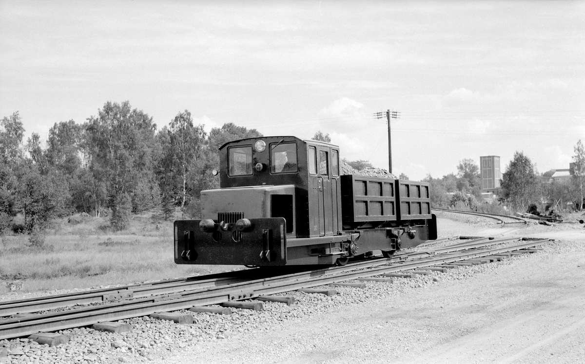 Åmmebergs Järnväg, ÅJ motorvagn med tippflak, "Bulleroxen", tillverkad av Motala 1955.