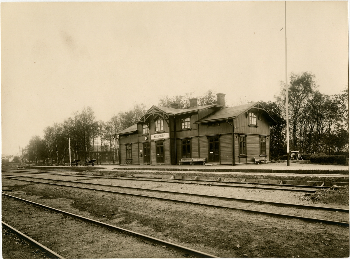 Station anlagd 1866-67. Stationshuset, tvåvånings i trä, tillbyggdes i båda ändar 1899 och i dessa tillbyggnader rymdes expedition samt 2 klass väntsal. Bangården har utbyggts i tre etapper, senast i samband med elektrifieringen 1949. . HLJ passerade UWHJs spår i plan på bangården
