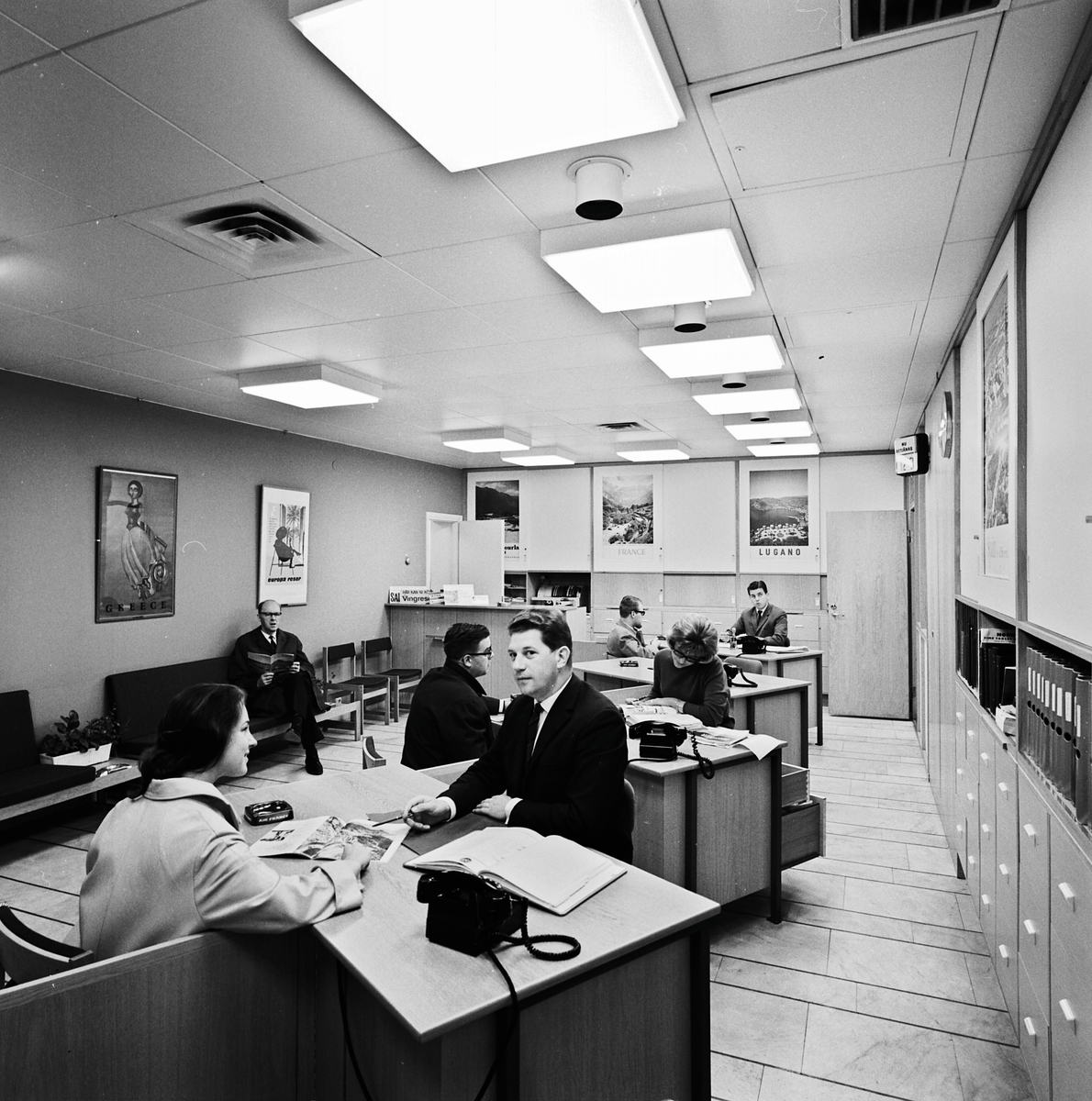 Titel: Statens Järnvägar, SJ Resebyrå Vasagatan, mittemot Stockholm Central.
