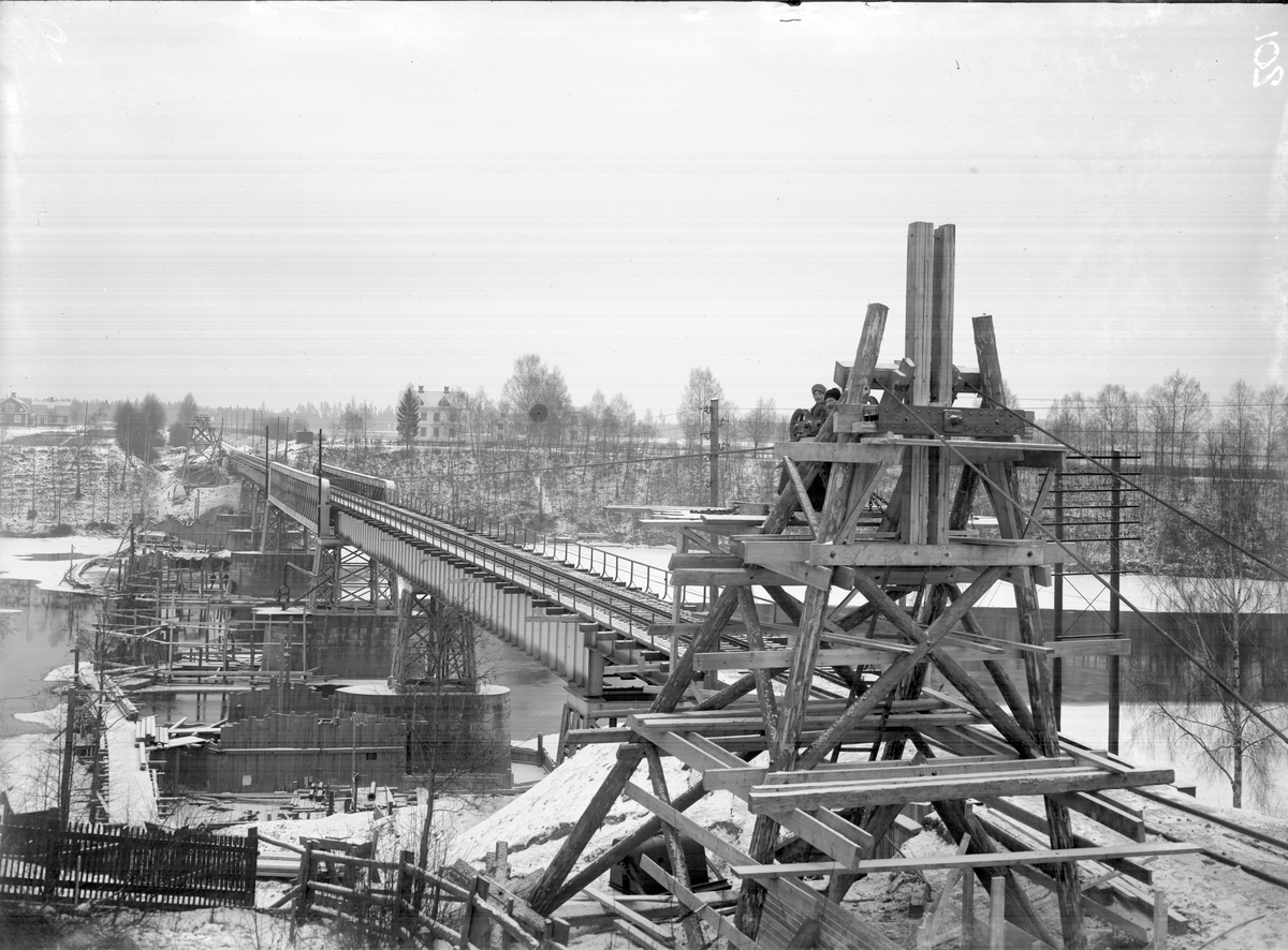 Anläggning av en ny kraftigare bro 1915-16. Den bro som byggdes kom att vara i bruk fram till 1994 då de ersatten av ännu en ny bro. Bron som syns i bild är bron från 1873-75, den finns kvar(2014) och kommer eventuellt att bli byggnadsminnesförklarad.