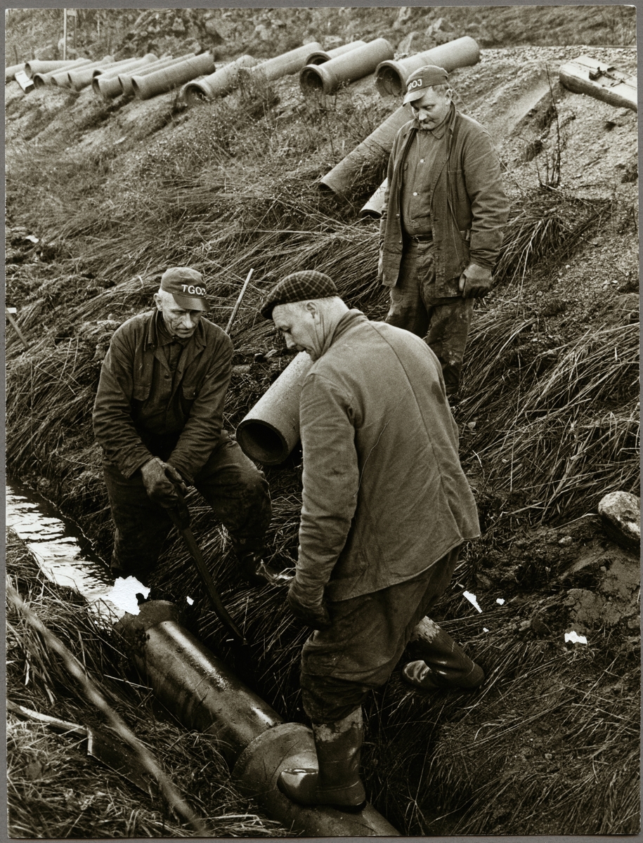 Personal vid underhållsarbete utmed järnvägsspåret på sträckan mellan Harsjön och Bälgviken 1967.