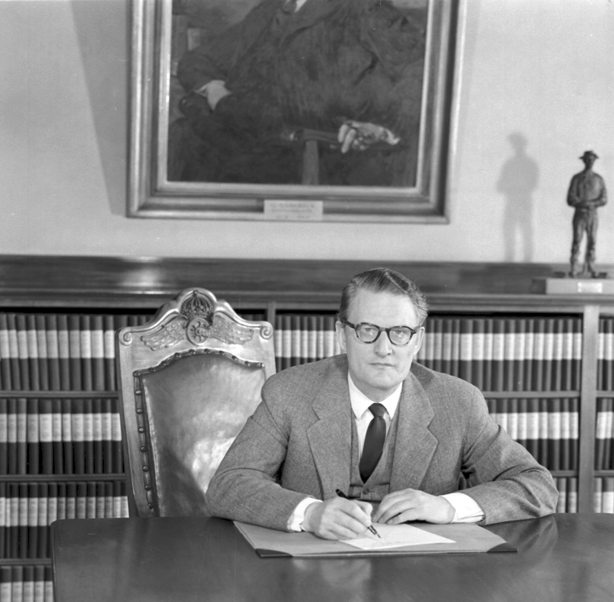 Generaldirektör Erik Upmark i plenisalen Statens Järnvägars, SJ, huvudkontor Centralstationen