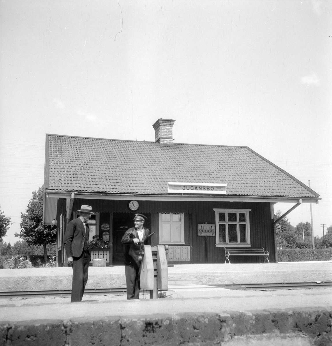 Jungabo, en liten hållplats . Det var SGGJ som byggde och öppnade Sala-Gysinge-Gävle järnvägen 1901. Den övergick till SJ 1937. Banan lades ner 1963. Centrallås för ljussignaler. Järnväg med bommar.