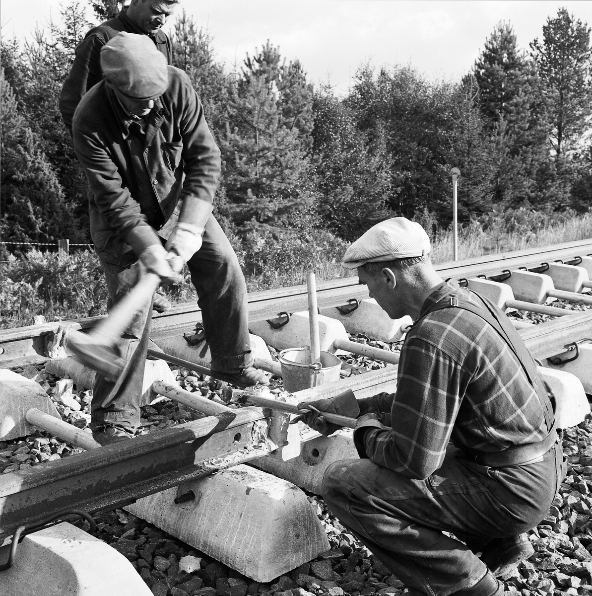 Spårarbete, Flisby-Solberga. Svetsar skarv