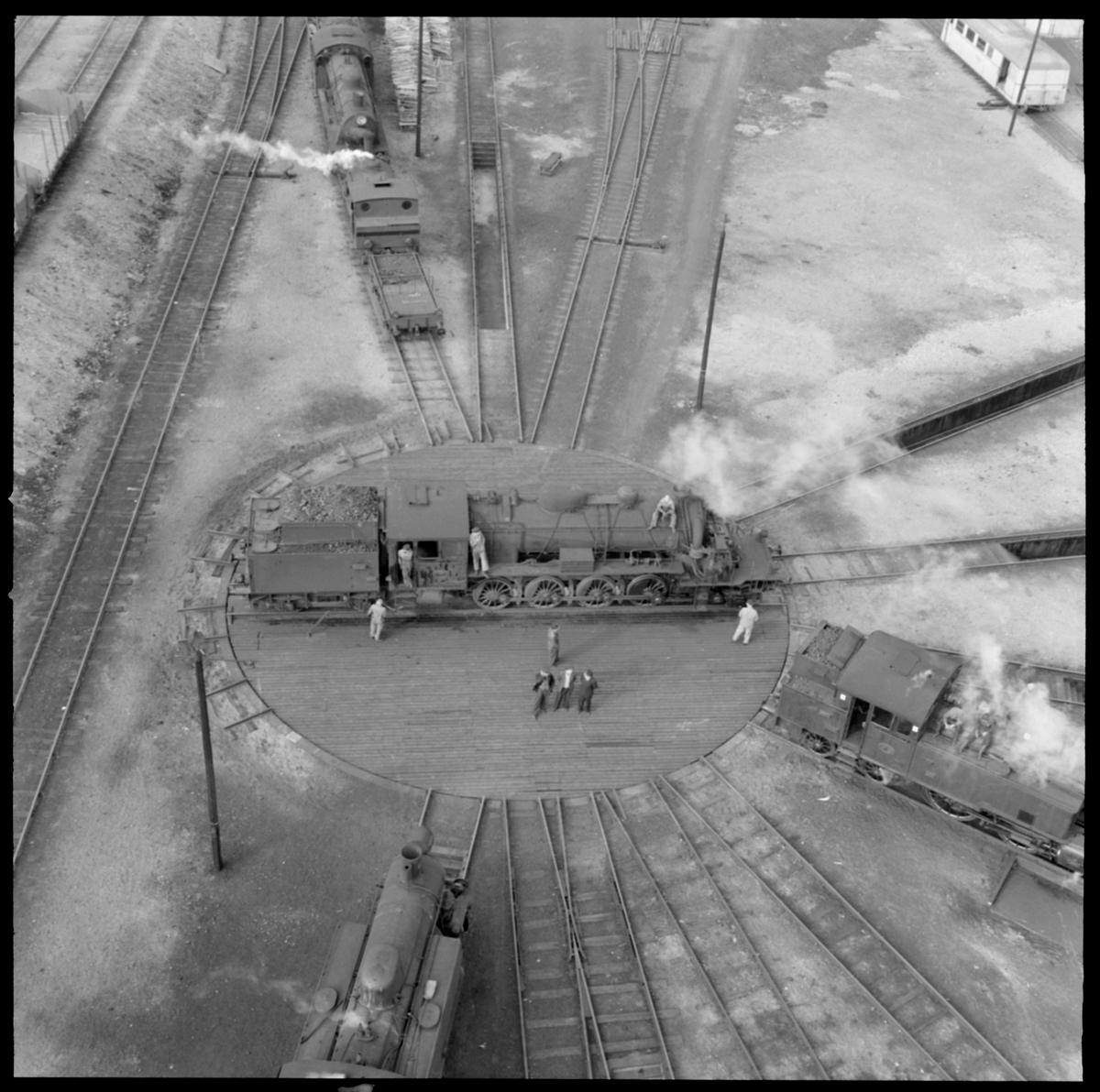 Ånglok med personal. Trafikaktiebolaget Grängesberg - Oxelösunds Järnvägar, TGOJ M3t 73.