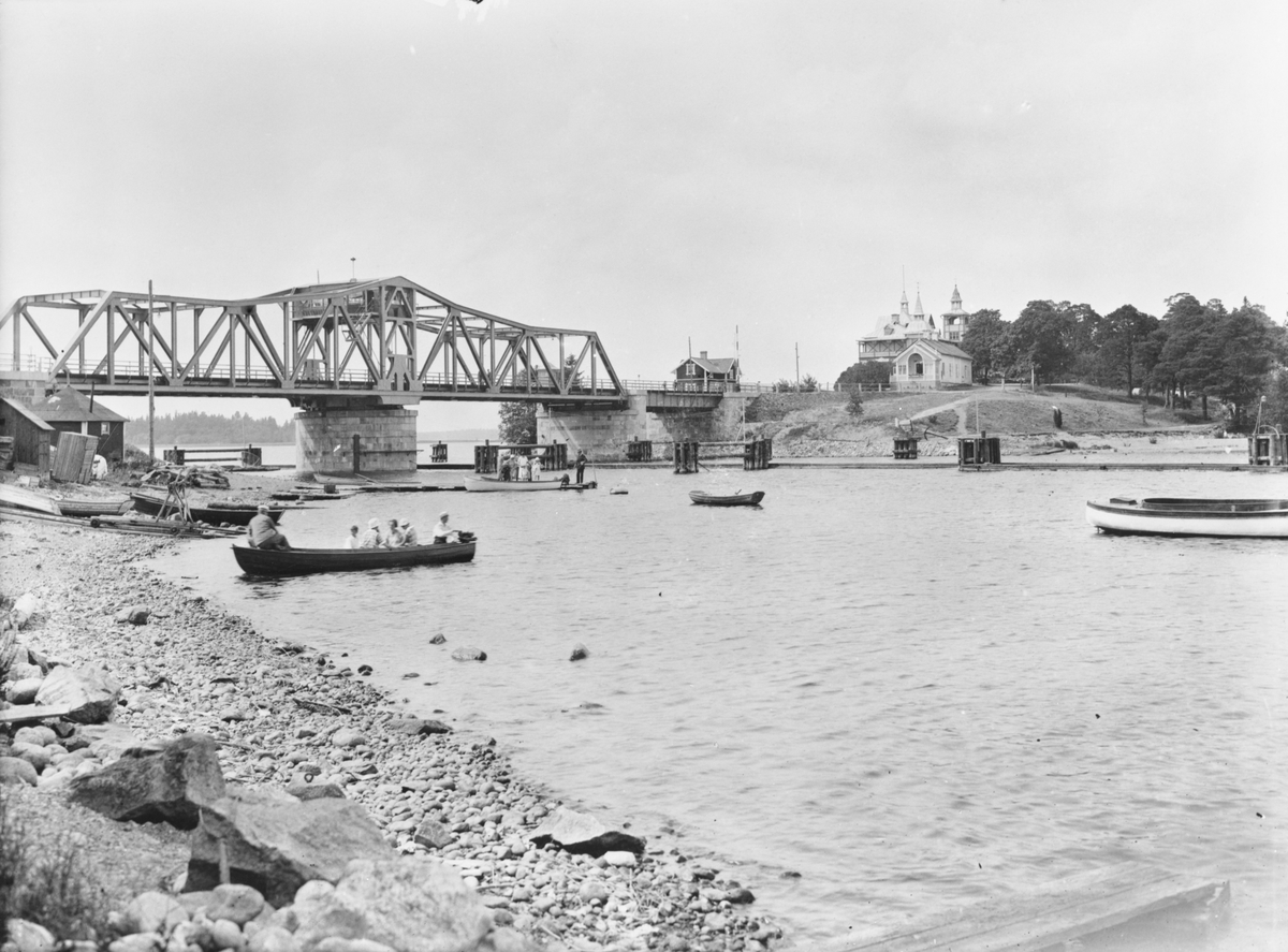 Den kombinerade väg- och järnvägsbron vid Kvicksund.