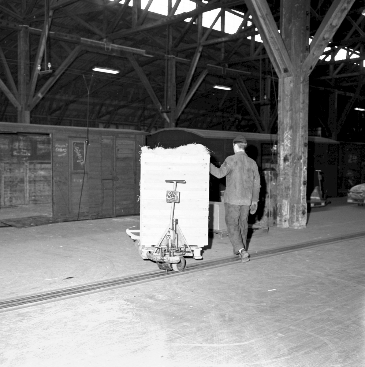 Omlastningsmagasin, pallyftare tillkopplas kedjetransportör