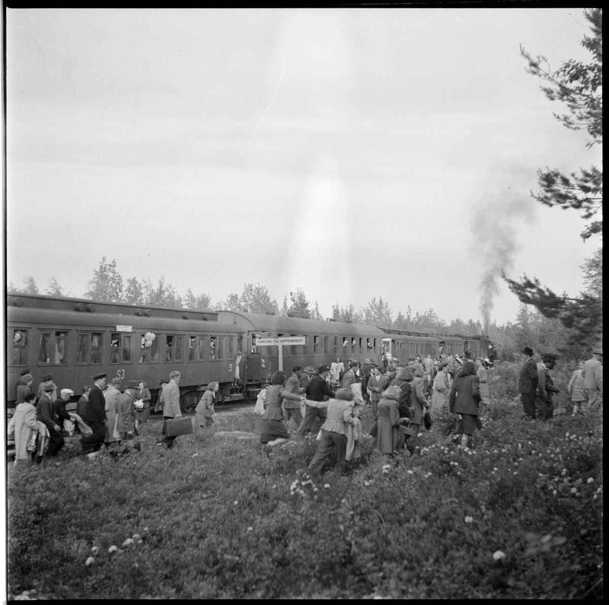 Resande kliver av för att ta promenaden upp till Luppioberget, på linjen mellan Alkullen och Övre Niemis.