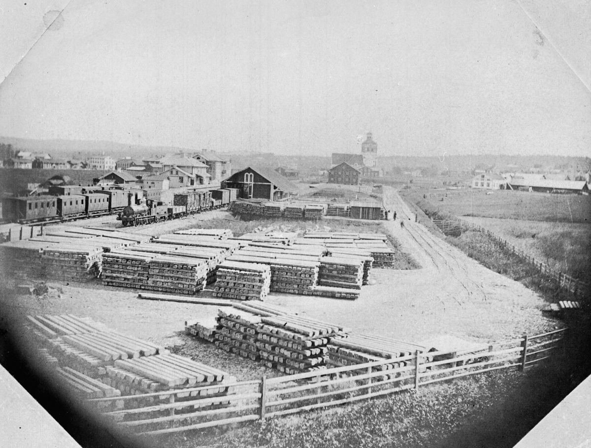 Järnvägshotellet under uppförande. stort sliperslager avsett för norra stambanans fortsatta byggande norrut.