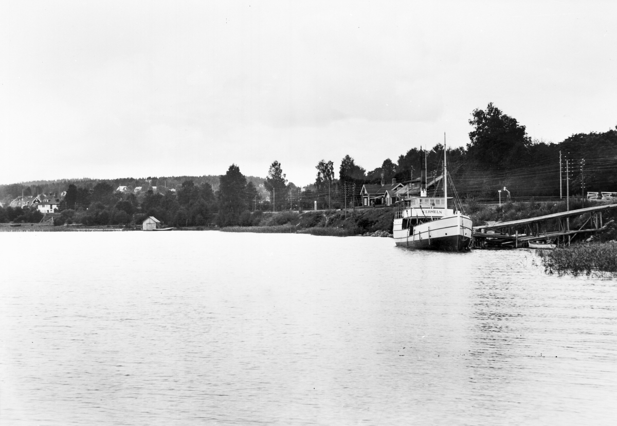 Edane station i bakgrunden. Lastfartyg vid bryggan ned från spår och godsmagasin.