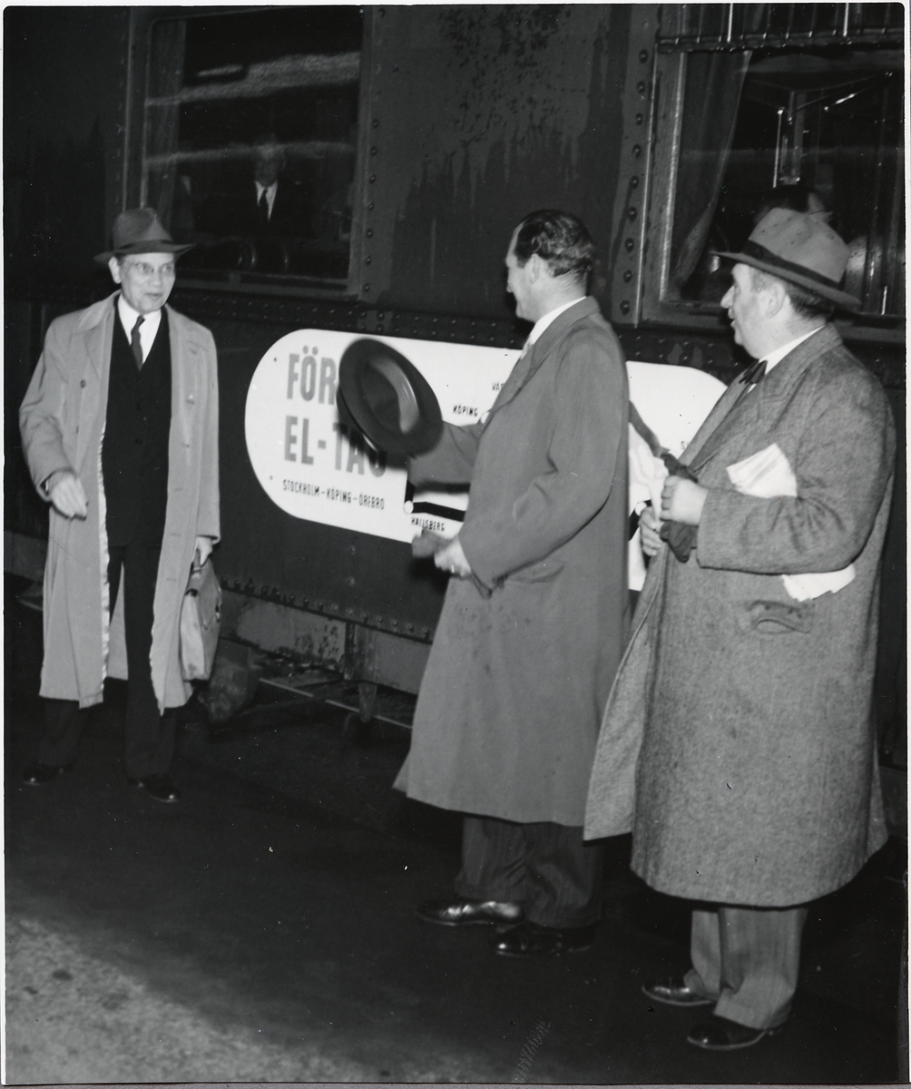 Invigningståget med Albin Johansson, Kooperativa förbundet, Distriktschef Bror Elwing och Distriktschef Blomberg.