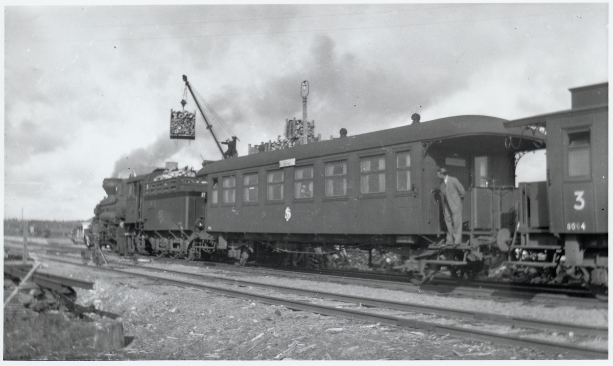 Strängsered med (SJ) Ststens järnvägars persontåg och vagn SJ C3f 8064.