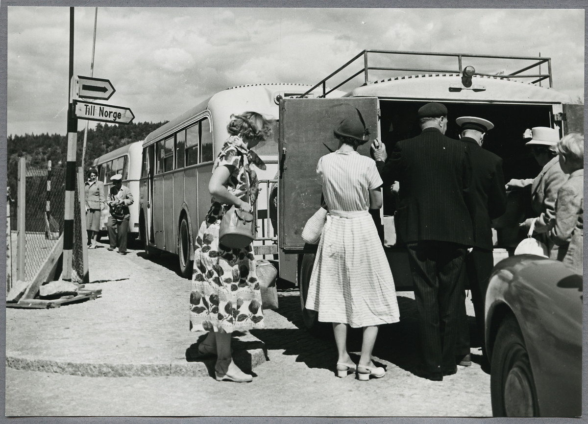 Statens Järnvägar, SJ bussar med släp vid Svinesund tullstation.