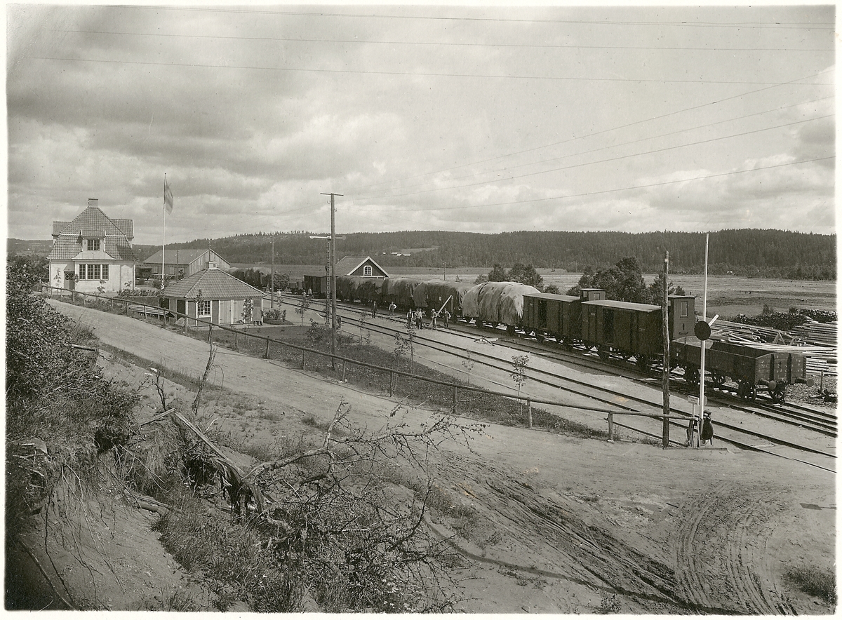 Stationen ritad av arkitekt Rudolf Lange och öppnad 1917. En- och enhalvvånings putsat stationshus. 1936 ombyggdes väntsal och expedition. Avbemannad från årsskiftet 1974/75, 1980 nedklassat som hållplats. Stationshuset revs sommaren 1982. Stationshuset ersattes efter rivningen av en öppen busskur