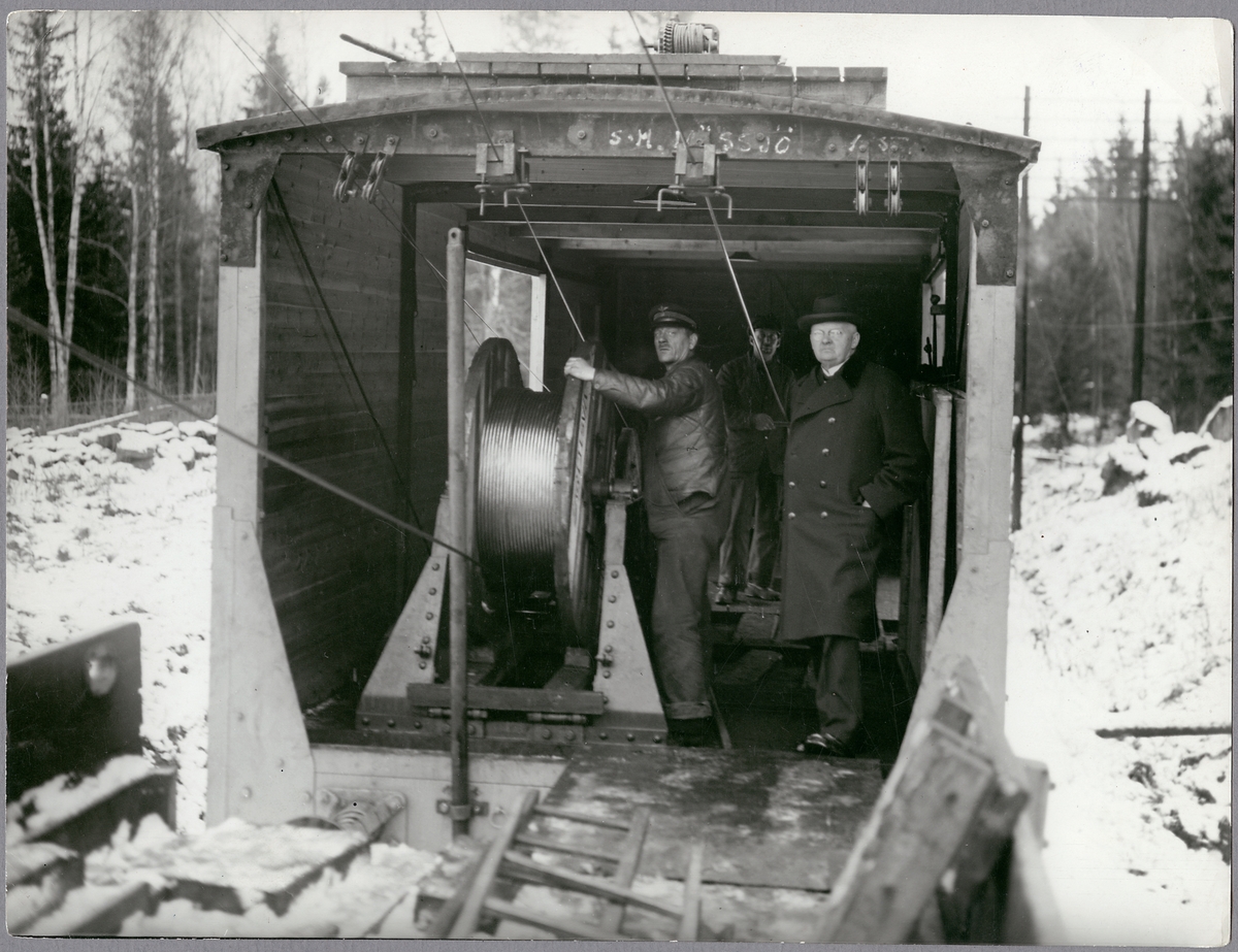 Eldragning av kontaktledning, fem trådar drages samtidigt.