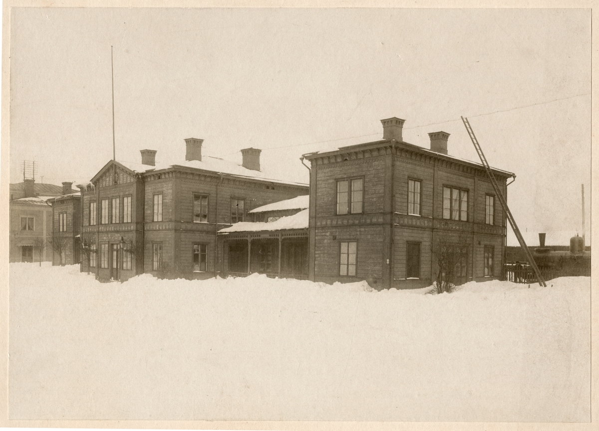 Stationshuset, mittpartiet i bottenvåning till väster biträdes överliggningsrum en trappa upp stinsbostad