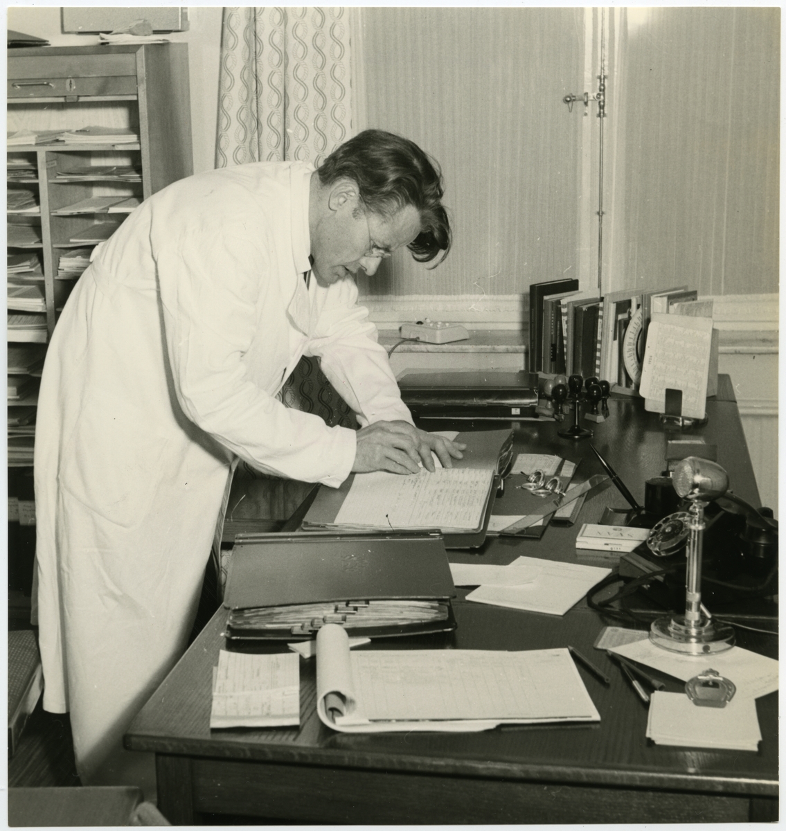 Läkarmottagningen SJ. Dr Beck. Kontrollerar sina papper