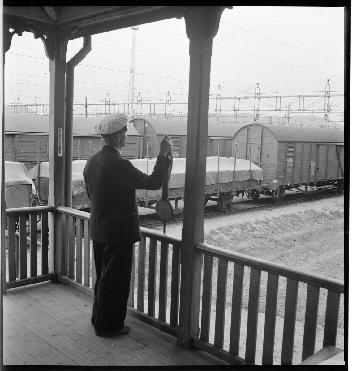 Stins tittar över bangården. Statens Järnvägar, SJ G 42485. Statens Järnvägar, SJ G 42232
